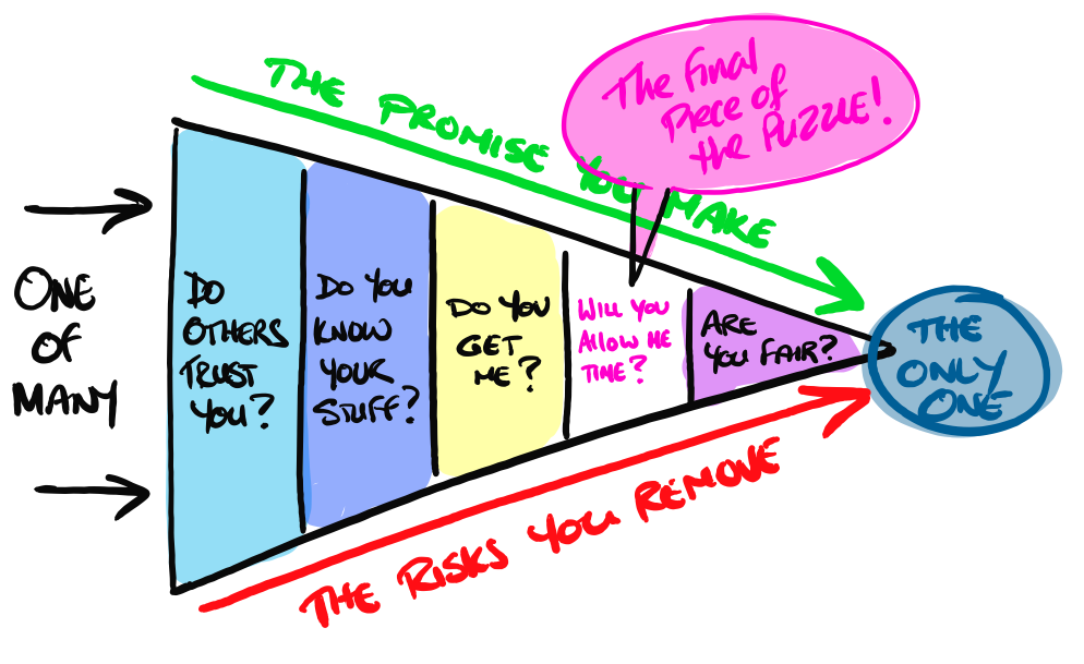 Your buyer knows some things about you - other people trust you, you know your stuff, you truly get them and you're fair.