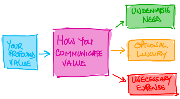 That what you do is an unnecessary expense for them, that it is an optional luxury, or that it is an undeniable need.