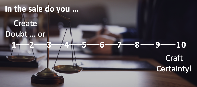 Think about the last ten sales conversations you had and rate them on a scale from one to ten, where one is you created doubt and ten is you crafted certainty.